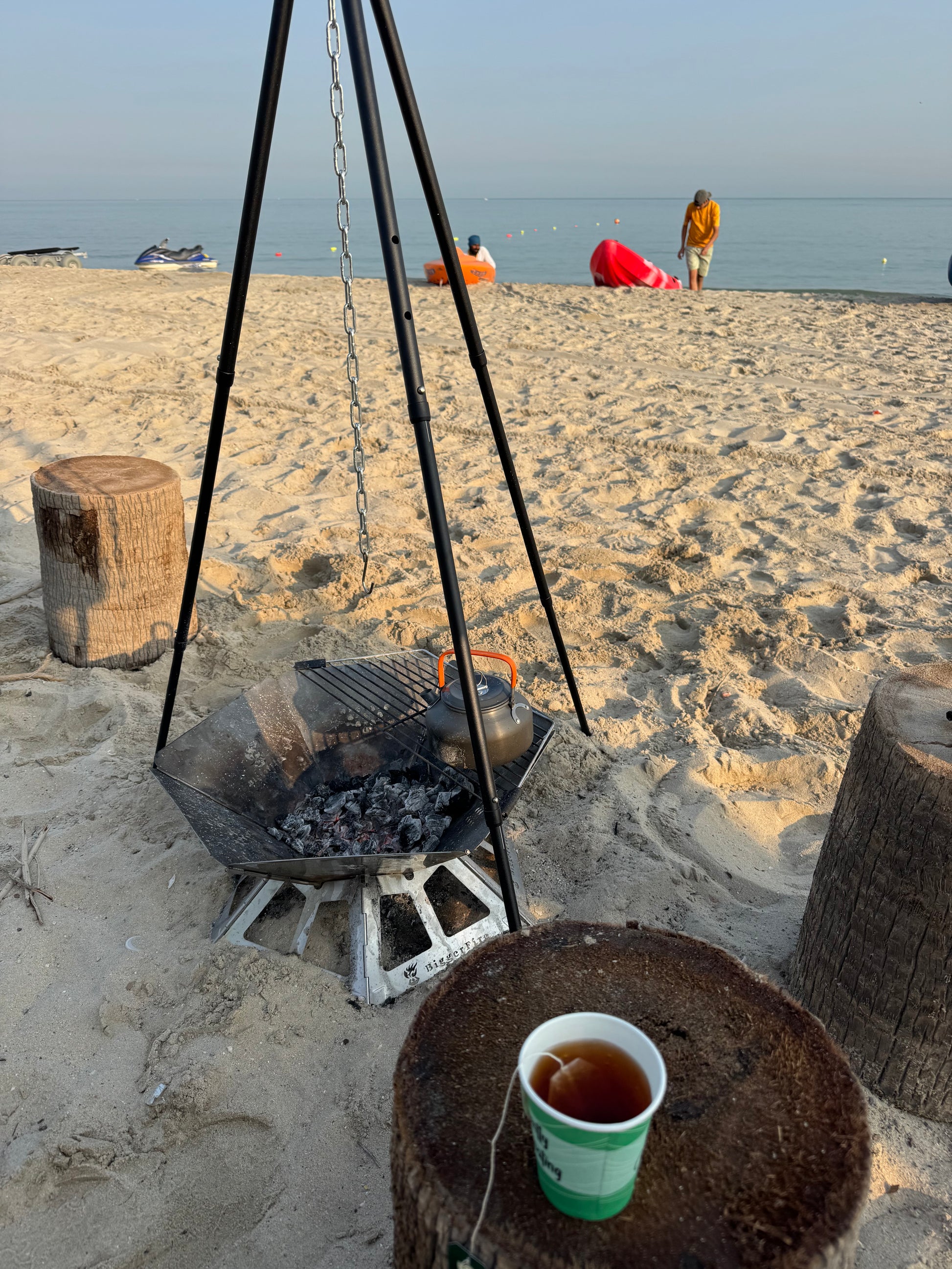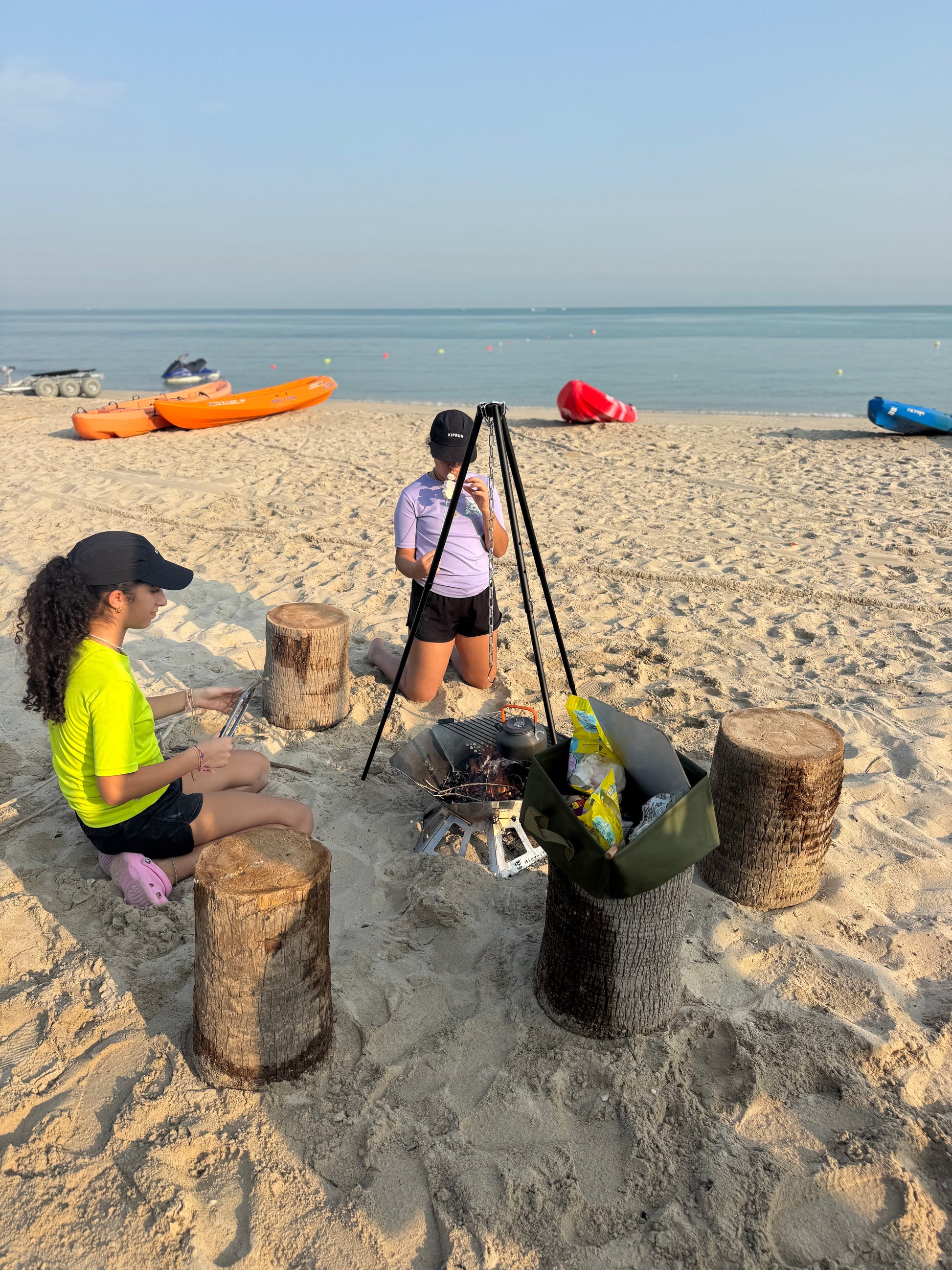 بعد الانتهاء من التجديف، يمكنك الانضمام الينا على الشاطئ مع مشروبات ساخنة على الفحم، وموسيقى خفيفة، ووقت للاسترخاء والتواصل مع الآخرين.